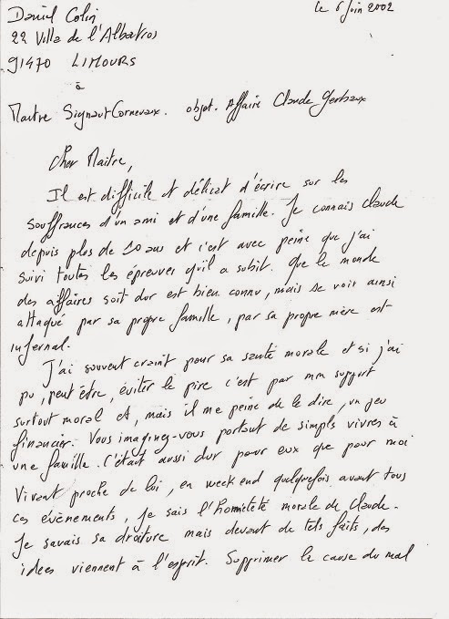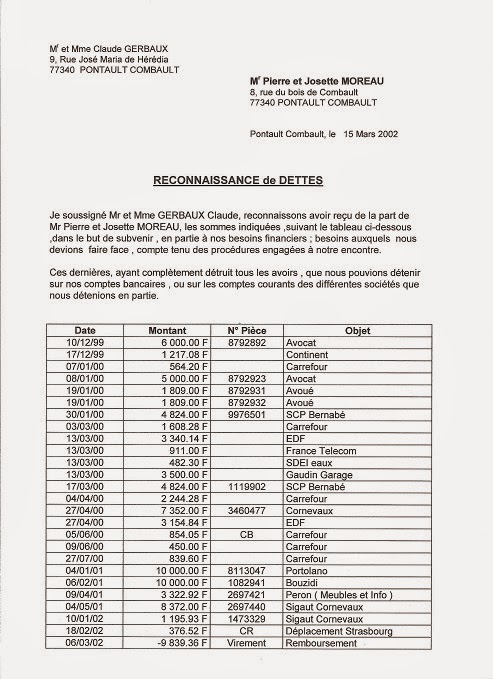 - qu’en dépit du fait qu’ils sont associés avec Claude, Mr et Mme Alain Gerbaux n’ont jamais apporté un centime de leur argent propre et l’argent que Mr Alain Gerbaux possède au sein des autres sociétés correspond en fait à des primes que son frère Claude lui a donné et qui ont été portées - comme pour lui d’ailleurs - en Compte-courant ; il en est de même en ce qui concerne Mme Aline Gerbaux.